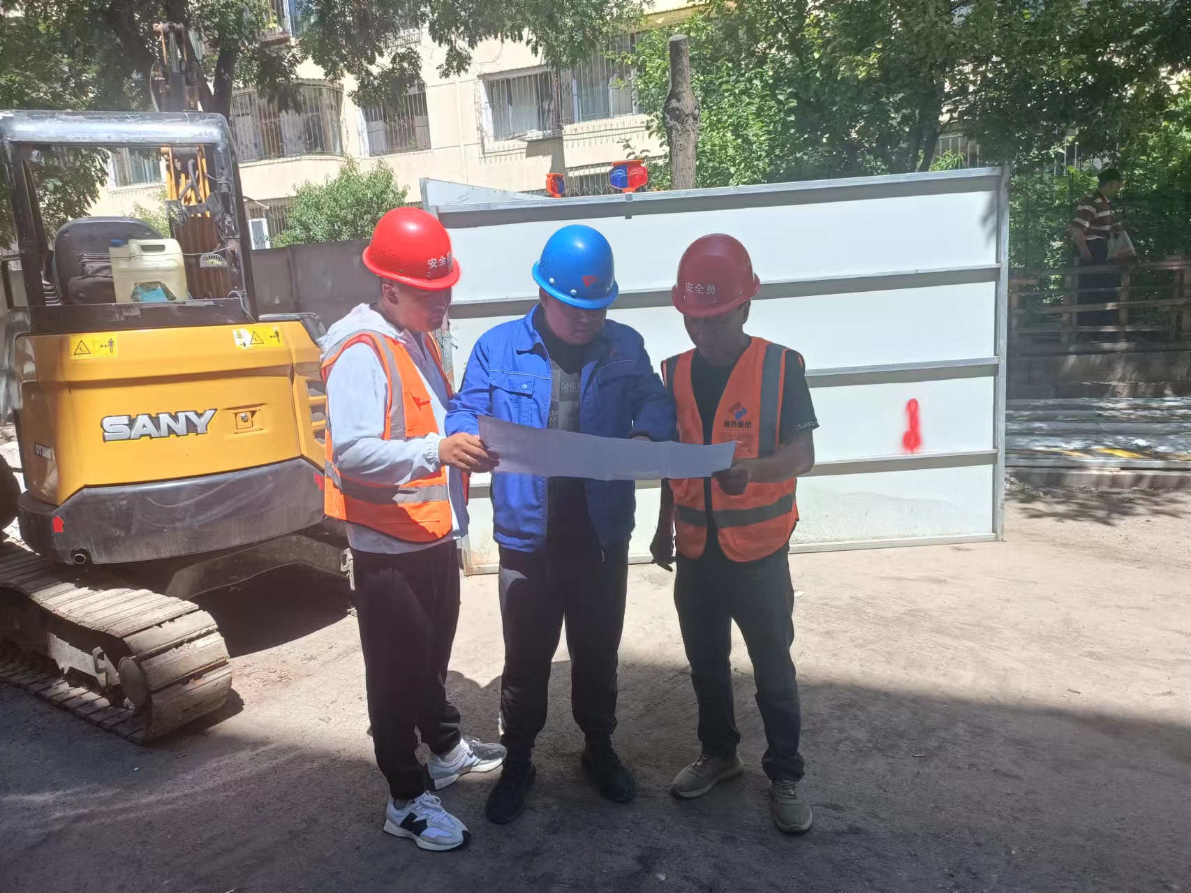 頭戴安全帽,腳踏電瓶車,來回穿梭在施工現(xiàn)場,駐足凝視、詢問交底、蹲下探查,這是城發(fā)供熱公司橋靠分公司第二運(yùn)營所工地代表張俊峰的工作日常。