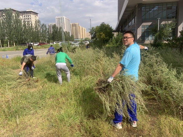 活動中,大家齊心協力、團結協作,采取手拔蒿草的方式,對站場進站口南側綠化帶區域的蒿草進行了集中清理,同時做到即清即運,防止草籽散落導致再次生長。