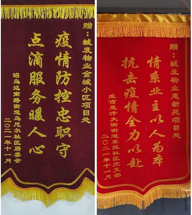 2021年城發(fā)物業(yè)公司年度取得了可喜成績(jī),2021年被呼和浩特市物業(yè)管理協(xié)會(huì)評(píng)為2021年度先進(jìn)單位、管理的金城小區(qū)項(xiàng)目被呼和浩特市物業(yè)管理協(xié)會(huì)評(píng)為2021年度呼和浩特市物業(yè)管理示范項(xiàng)目,史濤、郝曉東、范宇昆、董美麗四名同志被呼和浩特市物業(yè)管理協(xié)會(huì)評(píng)為2021年"抗議勇士"與"最美物業(yè)人","金城小區(qū)"、"陽(yáng)光美居"、"惠新苑"項(xiàng)目處分別被賽罕區(qū)烏尼爾社區(qū)居委會(huì)、富力社區(qū)、新城區(qū)東苑社區(qū)居委會(huì)贈(zèng)送"疫情防控忠值守,點(diǎn)滴服務(wù)暖人心"錦旗和榮譽(yù)證書。