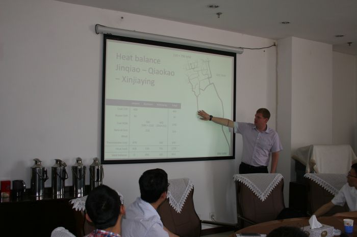 在為期半天的會議中,城發公司副總經理吳利勤向專家介紹了項目的進展情況和下一步工作計劃,供熱專家邁克爾演示了其水力分析和計算結果,城發公司相關技術人員與各專家就邁克爾的分析和計算進行了討論和交流。