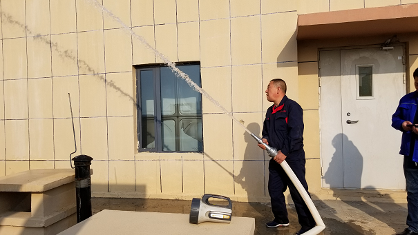 取景地點(diǎn)主要是有監(jiān)控室、報(bào)警閥室和消防高位水箱間。在拍攝期間城發(fā)房地產(chǎn)公司工程處處長(zhǎng)趙國(guó)棟和暖通專(zhuān)業(yè)工程師楊建剛詳細(xì)介紹了消防聯(lián)動(dòng)控制器是如何監(jiān)控火情后反饋信息,又是如何處理后續(xù)問(wèn)題的運(yùn)行程序以及高位水箱穩(wěn)壓系統(tǒng)的工作原理。最后,在樓頂測(cè)試了消防給水系統(tǒng)的給水壓力是否達(dá)標(biāo)。測(cè)試結(jié)果達(dá)到了10m充實(shí)水柱的標(biāo)準(zhǔn)。