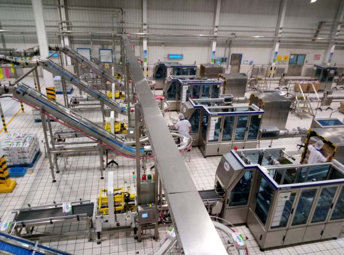 參觀人員到達伊利集團液態三車間后,工作人員通過介紹伊利園區的沙盤,使我們了解到內蒙古伊利實業集團股份有限公司是全國乳品行業龍頭企業之一,是行業的頂級品牌。 之后,工作人員又帶領大家參觀了伊利集團液奶標準化處理工段、液奶無菌灌裝工段、液奶后包裝工段以及立體倉儲系統,當工作人員引領大家走近立體倉儲系統時,所有人都發出了驚嘆聲,一排排整齊的貨位,一輛輛無人駕駛的STV運輸車,讓所有人大開眼界。最后,我們參觀了伊利文化看板和宣傳片,自主管理創新高,分析主管更有效、員工四大準則忠、誠、勤、儉,如此等等的標語,無時無刻不在靜靜的向參觀者展示著伊利的文化與精神。