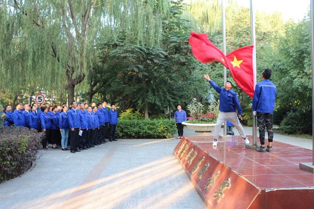 上午7:50分,城發公司黨委副書記、工會主席張永同志宣布,升旗儀式開始。護旗手邁著鏗鏘有力的步伐護送著五星紅旗走向國旗臺,伴隨著莊嚴的《義勇軍進行曲》,鮮艷的五星紅旗緩緩升起,在場的每一位職工肅立致敬,向國旗行注目禮,表達著對祖國崇高的敬意及無限的熱愛。