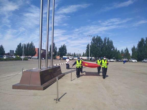 城發(fā)物流惱包園區(qū)全體職工舉行迎“七一”升國旗儀式